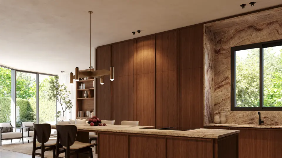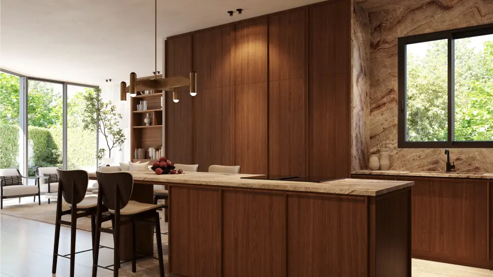 Main and internal doors crafted from solid-core walnut veneer wood, combining natural elegance, durability, and refined craftsmanship.